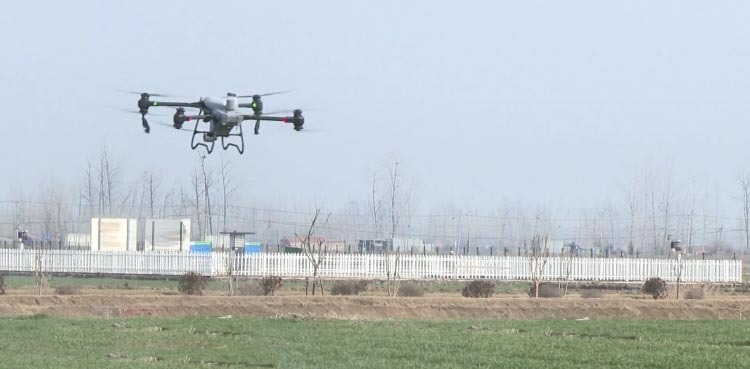 眼下,小麦陆续进入返青期,施用返青肥可以促进小麦生根、分蘖。在宿豫区来龙镇的一处家庭农场小麦种植基地里,植保机和无人机在田间来回穿梭,为小麦喷洒化肥。基地负责人陈凯今年共种植了300多亩小麦,这几天他都在忙活着施肥的事情。和以前不同的是,现在“田里人稀少,无人机满空飞”,300多亩地只需要两个多小时就能完成。