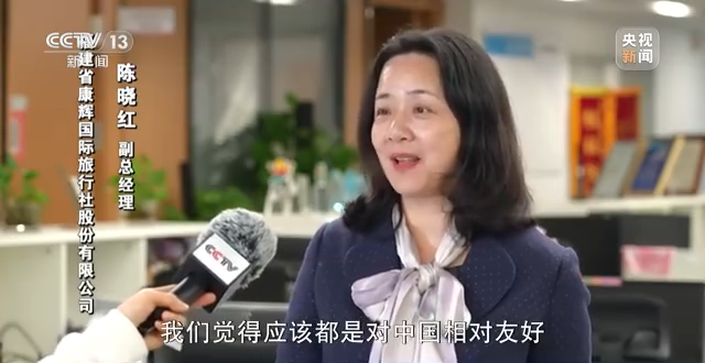 福建省康辉国际旅行社股份有限公司副总经理 陈晓红:从我们比较朴素的感受来讲,我们觉得应该都是对中国相对友好,不会说对中国入境的游客有特别与众不同或者特别对待。