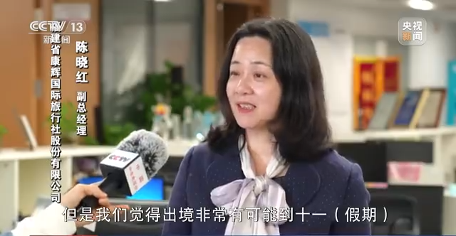福建省康辉国际旅行社股份有限公司副总经理 陈晓红:我们觉得五一假期一定会好,但是我们觉得出境非常有可能到十一假期才能有一个比较大的突破。我们期待的航班加密,也不是一个航空公司想加密就能加密,因为它有很多的因素,导致了出境的恢复就只能逐渐的一个过程。