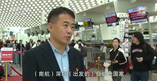 南航深圳市场销售部客户关系室书记 李柯:目前的话南航深圳出发的国际航班,目的地国家主要以东南亚国家为主,目前我们航班的往返的客流率为60%左右,客源构成主要以公务、商务和劳务旅客为主,而旅游客源占比还是比较少,只占10%左右。