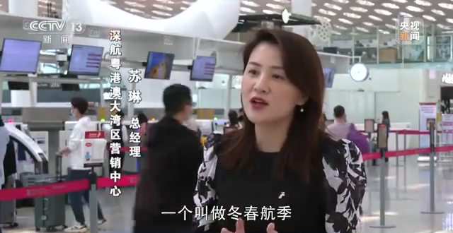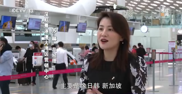 深航粤港澳大湾区营销中心总经理 苏琳:在深航的航线上商务需求客人最多的,主要是像日韩、新加坡,包括现在我们以前所熟知的像曼谷这样的旅游航线,其实现在也是以商务客源居多。