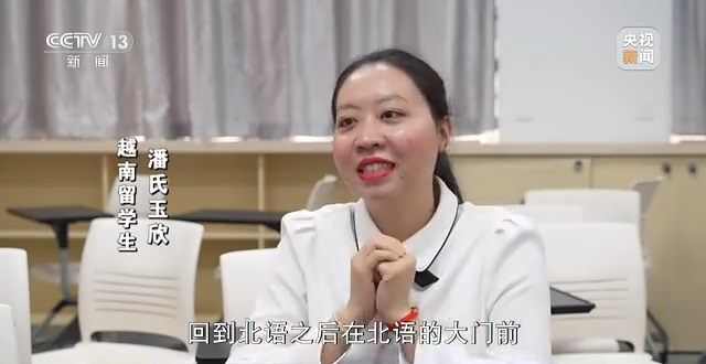 越南留学生 潘氏玉欣:大家回来真的看到老师,是一种不能用语言来形容的。回到北语之后在北语的大门前,我就说母校我回来了,我终于回来了,就是很兴奋的。