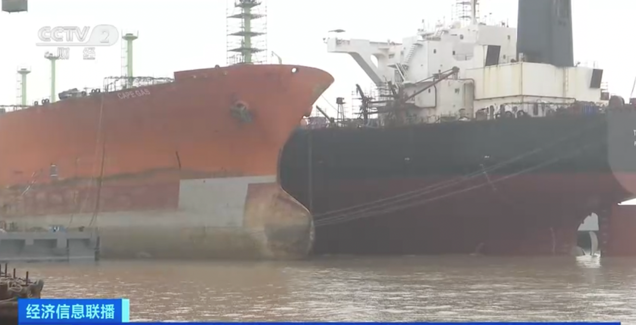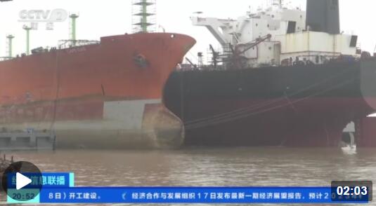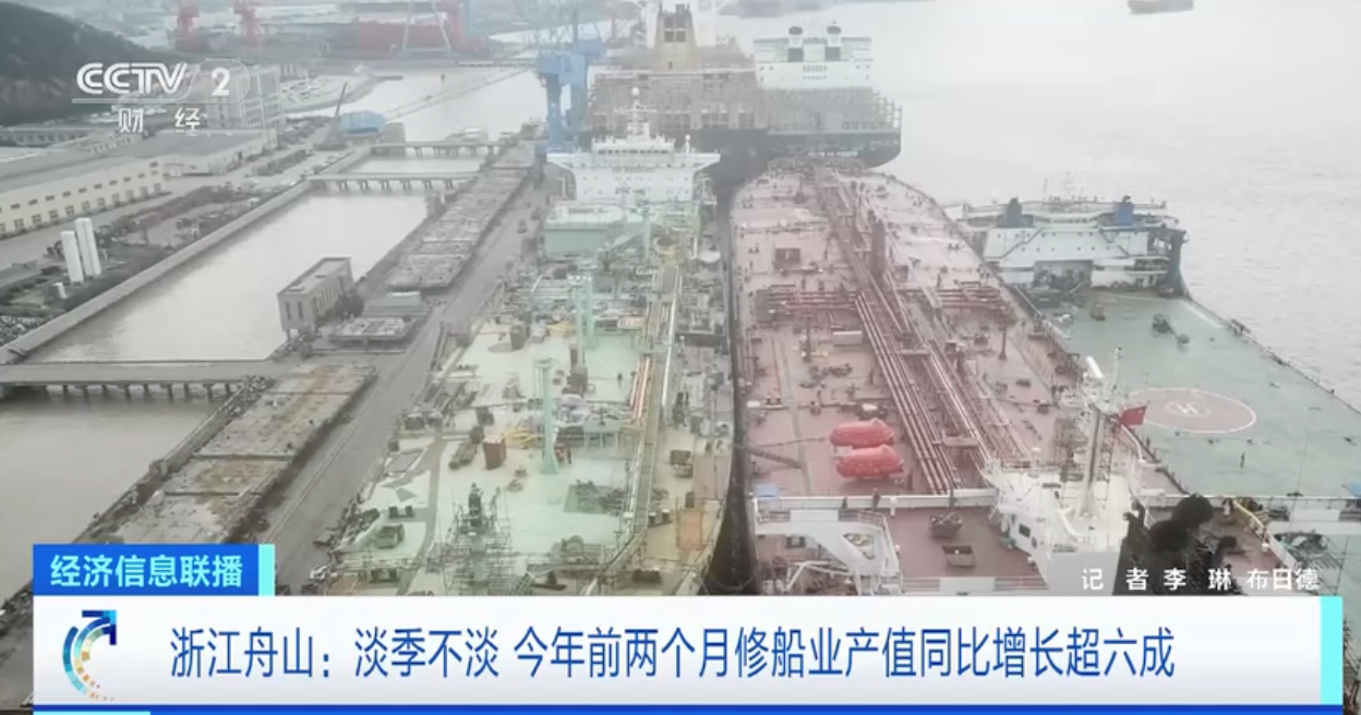 总台央视记者 李琳:在浙江舟山六横岛的一个船舶维修基地,船坞全部都在繁忙地作业,而且每个泊位上还排着不止一艘正在维修或等待维修的国际船舶,包括了集装箱船、汽车运输船、邮轮等各种船型。