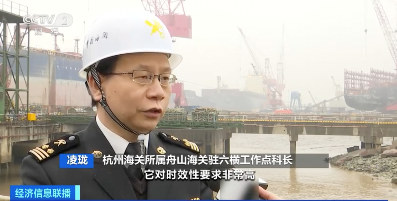 杭州海关所属舟山海关驻六横工作点科长 凌珑:对于船修来说,它对时效性要求非常高。生产高峰期间,我们第一时间安排船舶登临,确保船厂可以立刻开工。同时对于修理过程中需要供应大量的船舶零部件,开辟了船舶供应物料的审批绿色通道。