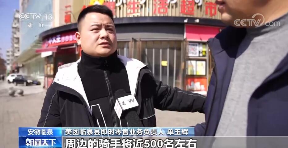 美团临泉县即时零售业务负责人 单玉辉:目前,入驻平台商户差不多1200家,周边的骑手大约有500名,近三年交易额整体增加了一倍。