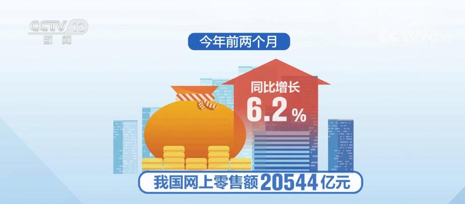 最新统计数据显示,今年前两个月,我国网上零售额20544亿元,同比增长6.2%,其中,实物商品网上零售额17476亿元,增长5.3%。5G基站增加了7.2万,总数达到238.4万。电子及通信设备制造业投资增长20.5%。信息基础设施的快速发展正加速惠及民生、造福百姓,为经济发展注入新动能。