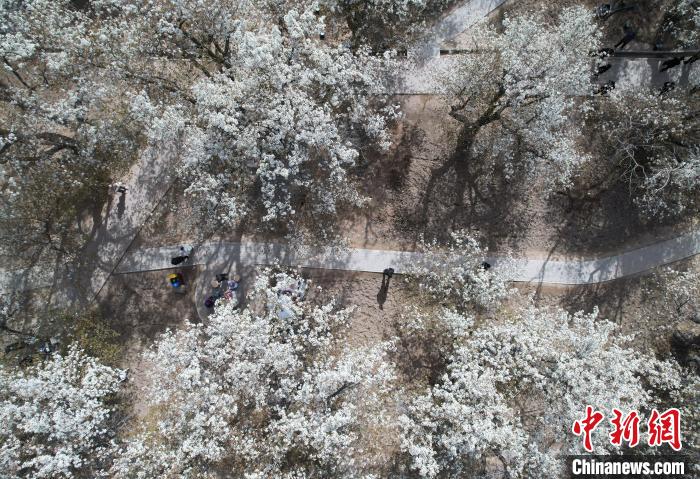 4月7日,游客纷纷踏访南长滩村赏梨花。于晶 摄