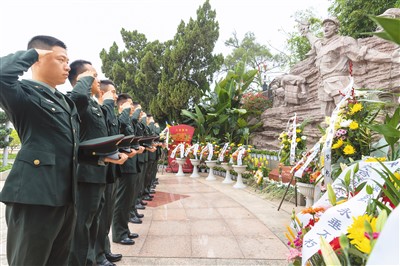 4月4日,第73集团军某旅组织官兵赴福建省厦门市鼓浪屿英雄山革命烈士陵园祭奠先烈。