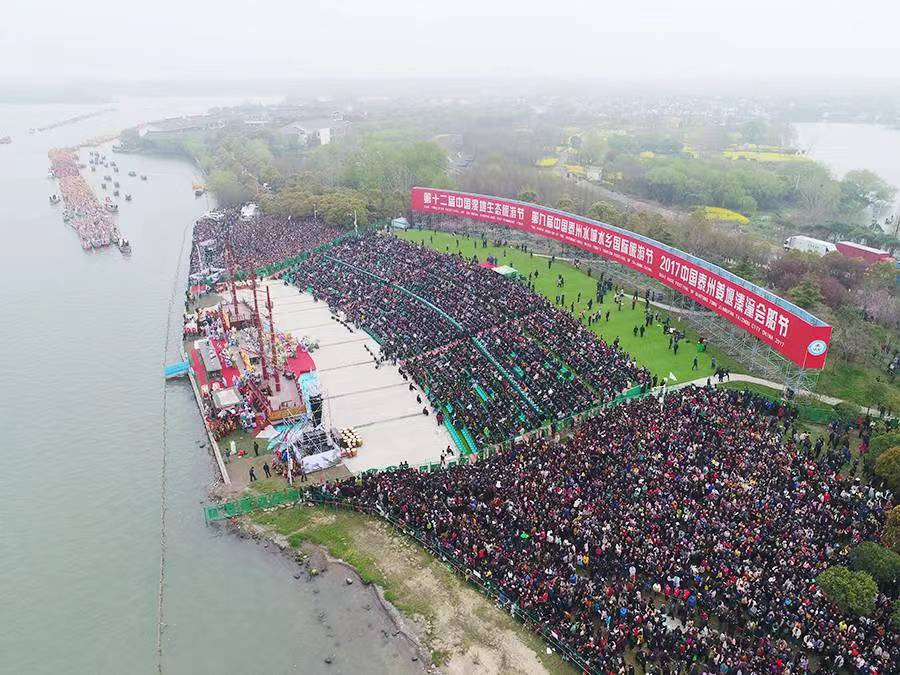 打造全业融合新境界。会船节期间,文化、赛事、经贸为一体的饕餮盛宴如约而至,赏析高二适书法,感悟“当代草圣”挥毫泼墨的酣畅淋漓;溱湖半程马拉松,体验速度与汗水的对决;群众文化艺术节,感受传统艺术的无穷魅力;听船娘悠扬清脆的摇橹小调;看“生态环境全球500佳”河横村;赏十里滨水长廊;栖身小杨人家网红民宿;游院士故居;探访单塘河新石器遗址;追寻西周江淮第一城的辉煌岁月;打卡溱潼砖瓦博物馆;对话文人大师;游觅苏中第一个红色苏维埃政权诞生地;经贸洽谈会,在溱湖等你,真正实现会船搭台,经贸唱戏。
