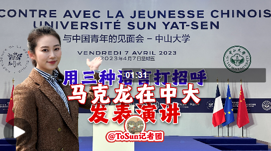 4月7日下午,法国总统马克龙来到中山大学体育馆,用法语、普通话、粤语和现场观众打招呼并发表演讲。跟随ToSun记者团的镜头一起看现场。