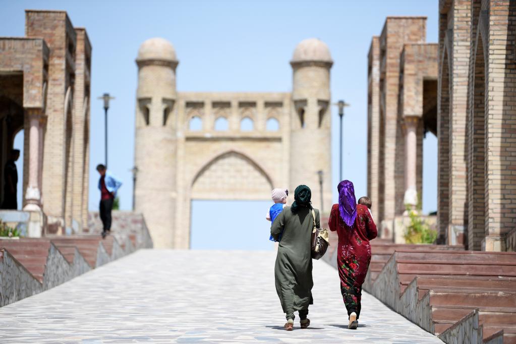 2022年9月3日,人们在乌兹别克斯坦撒马尔罕市列吉斯坦广场游览。新华社发