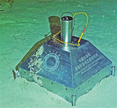 在沉船遗址布放的水下永久测绘基点(5月20日摄)。