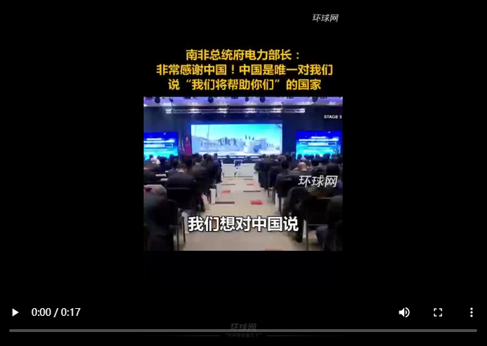 南非总统府电力部长:非常感谢中国!中国是唯一对我们说“我们将帮助你们”的国家