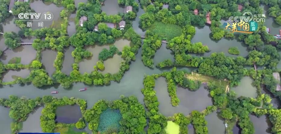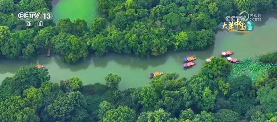 这里是杭州西溪国家湿地公园。盛夏时节,杭州西溪湿地草木葱茏、绿树成荫,鹭舞燕翔、荷香鱼跃,星罗棋布的鱼塘呈现出“万塘揽胜”的美景。这里生态资源丰富,有维管束植物739种、鸟类203种、昆虫911种、鱼类56种。二十年来,杭州西溪湿地以保护原生态为目标,统筹生产、生活、生态三大空间布局,探索了一条湿地保护与利用双赢的道路。