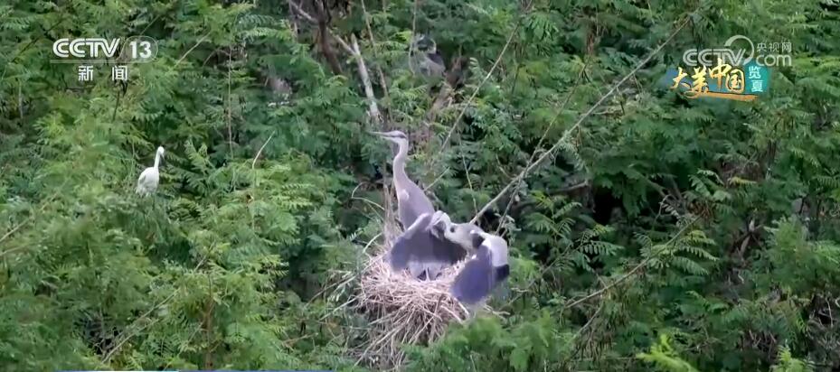 近段时间,河北省秦皇岛市的桃林口水库的库区内碧水盈盈,河畔的林木葳蕤(wēi ruí),郁郁葱葱,一派自然和谐的美景。从高处俯瞰,苍翠之间可以看到星星点点的白色,那便是国家二级保护动物苍鹭。苍鹭或三两为伴嬉戏玩耍,或独自伫立枝头眺望远方。水面上,还有苍鹭展翅滑翔觅食育雏,数量多时,这里的苍鹭可达上千只。除了苍鹭外,还有黑鹳、鸬鹚、白鹭等各种鸟儿在此栖息安家。