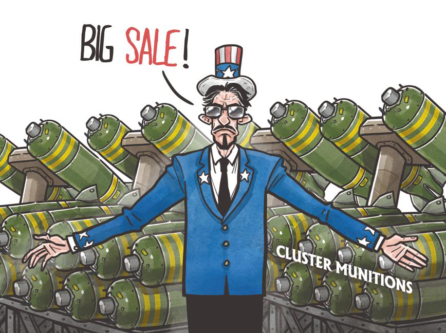 美售乌集束武器借机处理过期军火。(来源:中国日报 蔡艨 英文《中国日报》2023年7月12日8版)