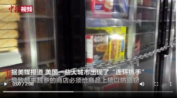 旧金山市一家连锁店的员工表示,商店每天会遭到近20次抢劫,只能用链条和挂锁锁住冰柜来防扒手。这一现象在沃尔玛、沃尔格林等连锁店中越来越普遍。