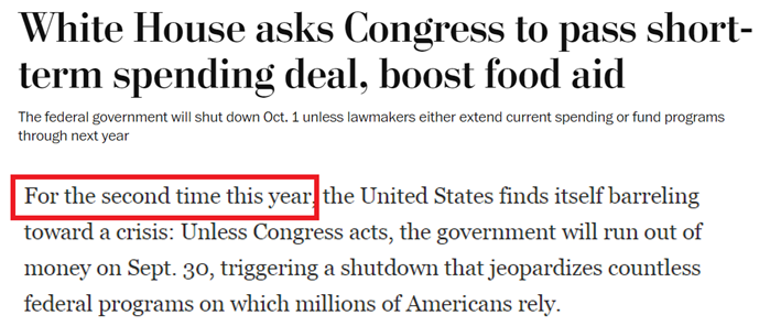 随着美国2023财政年度即将在9月30日终止,陆续返岗的两党议员们迎来了一年一度的“灾难性立法月”。