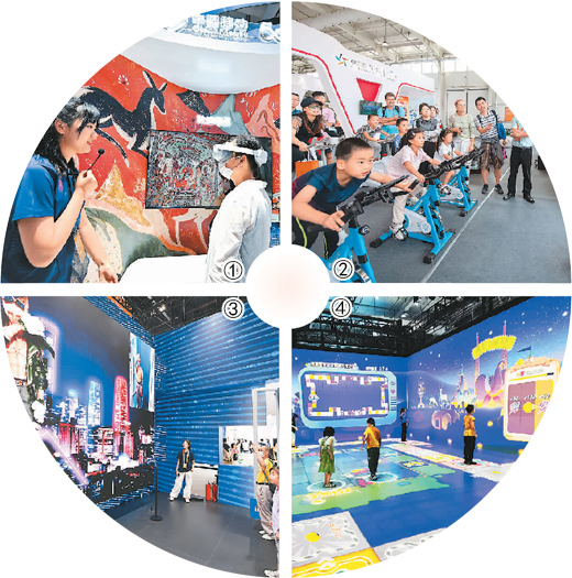 图④:今年服贸会专题展聚焦行业热点和发展趋势,覆盖AI和元宇宙技术、消费电子服务等内容。图为服贸会首钢园展区,小观众在体验沉浸式游戏。罗 伟摄(人民视觉)