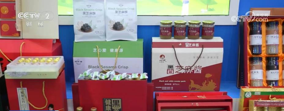 本届展会上,全国16个省份的680种特色农产品一一亮相。这个展台20多种芝麻系列产品吸引了众多目光。工作人员介绍,通过精加工的农产品附加值提高了35%,当地每亩芝麻的种植效益增加了600元。