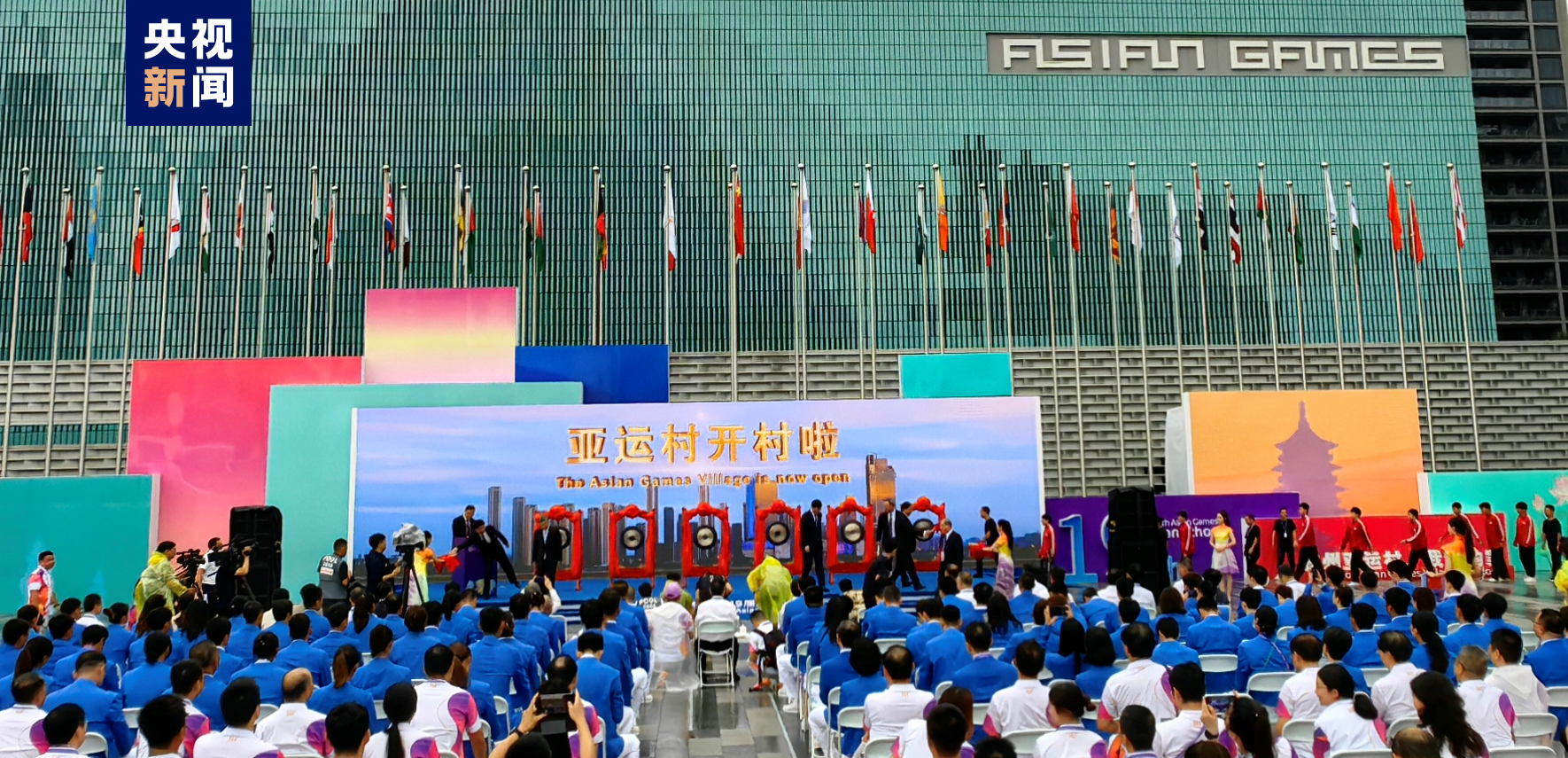 刚刚,在杭州第19届亚运会亚运村开村仪式暨中国体育代表团欢迎仪式上,随着开村鸣锣声响起,杭州亚运村正式开村,迎接各代表团的入住!