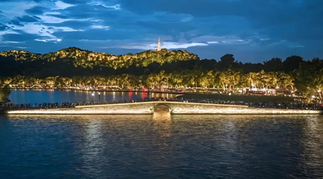 西湖是上天赐予杭州的瑰宝,自古以来,文人墨客皆沉醉于西湖的盛景之中,其中不乏对夜西湖的赞美。当年苏轼就曾写下“水枕能令山俯仰,风船解与月徘徊”等名句。