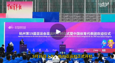 中国青年报客户端杭州9月16日电(中青报·中青网记者慈鑫文并摄)今天上午,杭州亚运村举行开村仪式暨中国体育代表团欢迎仪式。中国代表团为首支入住亚运村的队伍,这也标志着亚运村正式投入赛时运行。 开村仪式上,杭州市市长、杭州亚组委副主席兼秘书长姚高员、亚奥理事会代理总干事维诺德分别致辞。姚高员表示,亚运村将全心全意为大家提供舒心的居住服务,全力以赴为大家提供安心的备赛保障,全情投入为大家提供丰富的文化体验。维诺德赞扬杭州亚运村的理念极具创新性,充分彰显了亚洲奥林匹克运动的团结一致。 据介绍,杭州亚运村由运动员村、技术官员村、媒体村组成。亚运会举办期间,亚运村将为2万余名运动员、随队官员、技术官员和媒体人员提供住宿、餐饮、交通、文化、科技、医疗、商业等全方位服务保障。当天,除杭州亚运村正式开村外,宁波、温州、金华、桐庐、淳安5个分村和绍兴、临安、萧山3个运动员接待饭店同时开村,迎接各代表团入住。