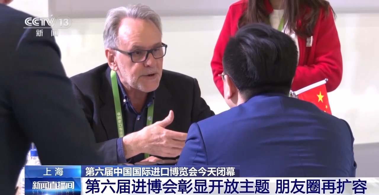 总台央视记者 宋菀:在今年进博会的配套活动——贸易投资对接会的现场,有位赞比亚客商告诉我,这次来有一个目标,就是能寻觅6个合作意向。但令他出乎意料是,在首日上午他就成功签了3个,他说如果是自己去寻找合作伙伴,至少需要半年,更加开放的展会形式让洽谈签约也更加便捷,他最终超额完成目标,拿着9个合作意向满载而归。