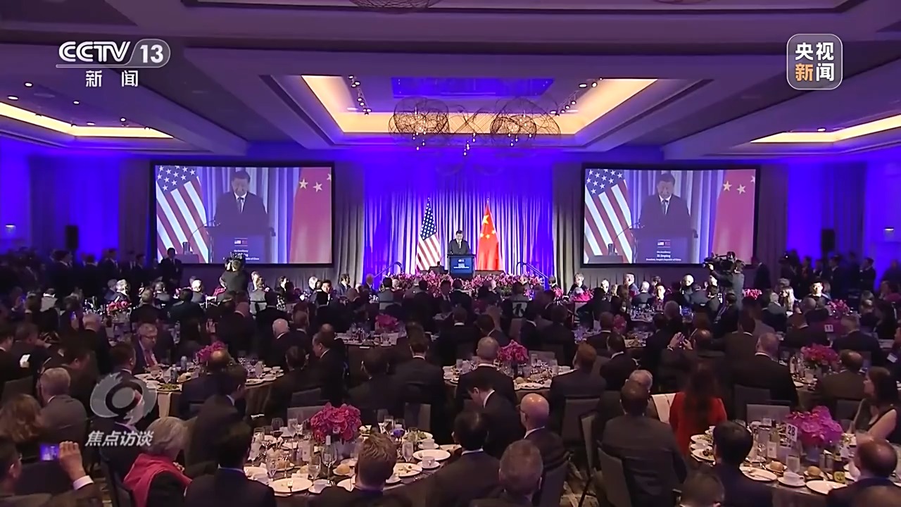 在出席美国友好团体联合举办的欢迎宴会演讲中,习近平主席60多次提到“人民”这个词。习近平主席真挚的语言、生动的故事,深深打动了在场听众的心,引发了强烈共鸣。从西雅图到旧金山,时隔8年,习近平主席同美国各界友好人士再次亲切互动,让人们深切感受到,中美友好的基础还在,交往的动力犹存,合作的前景可期。 中国国际问题研究院美国研究所副所长 苏晓晖:国之交在于民相亲,人的因素在中美两个大国的关系中发挥着不可替代的作用。从习主席在旧金山的活动,从美方的一些反应,尤其是现场的热烈氛围,可以看出,中美两个大国稳定关系,寻找合作的契机是顺应人心,是民心所向。