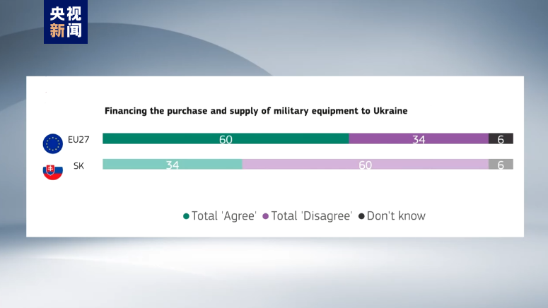 根据欧盟民意调查机构“欧洲晴雨表”的一项民调,有60%的斯洛伐克民众不同意欧盟向乌克兰提供军事支持,包括向乌克兰提供军事装备和购买资金。对此表示支持的斯洛伐克民众占比34%,比春季的调查结果减少了3%。