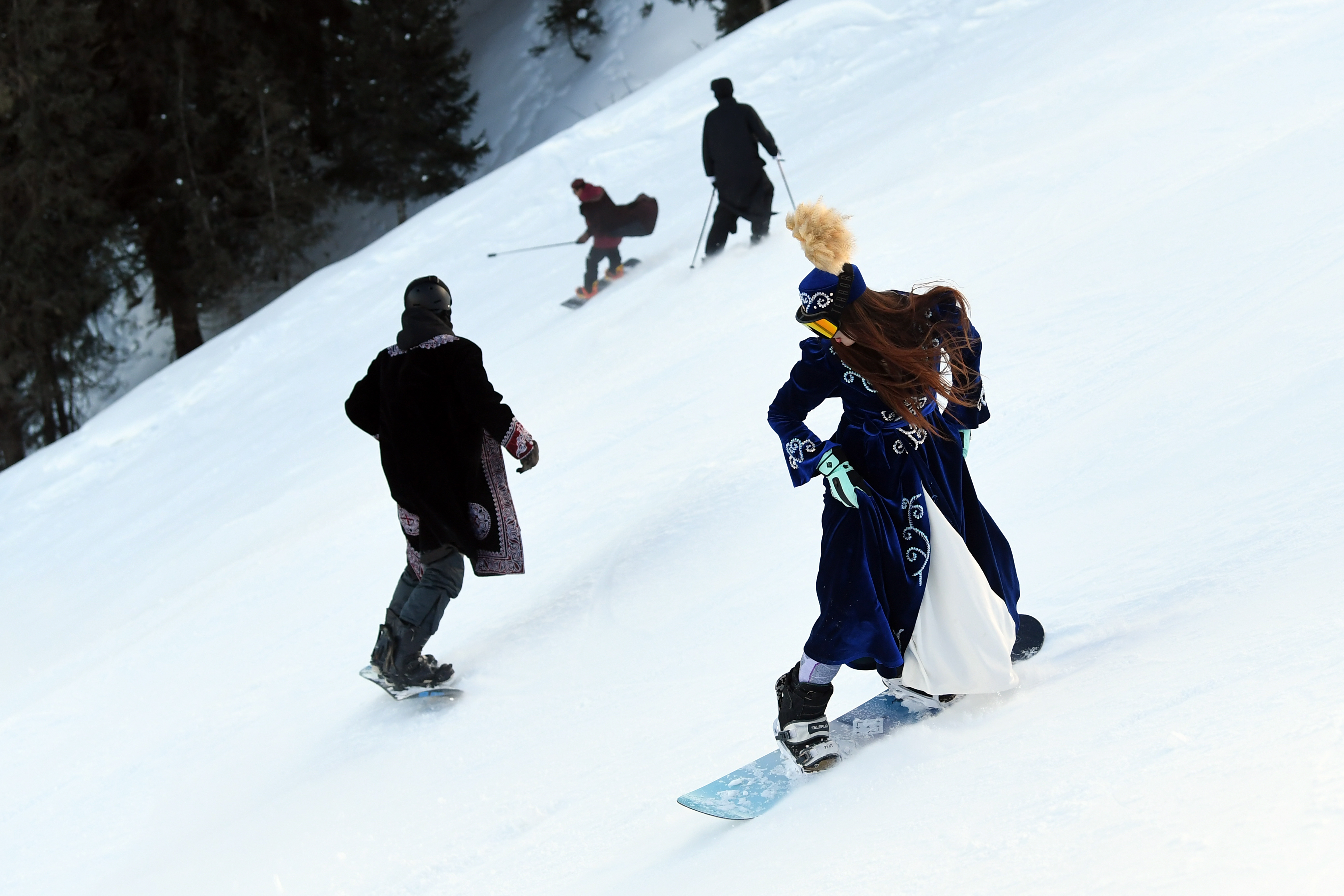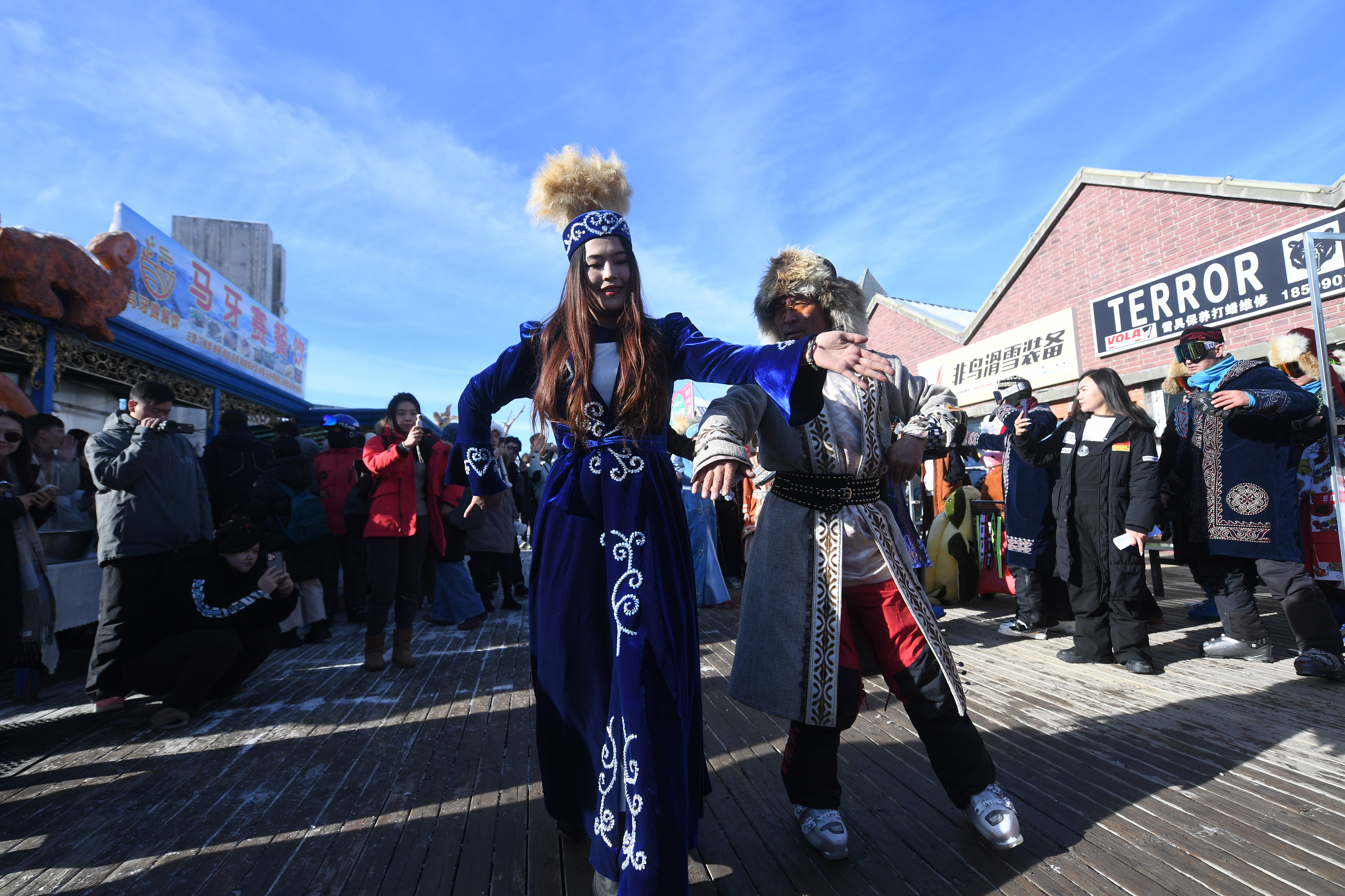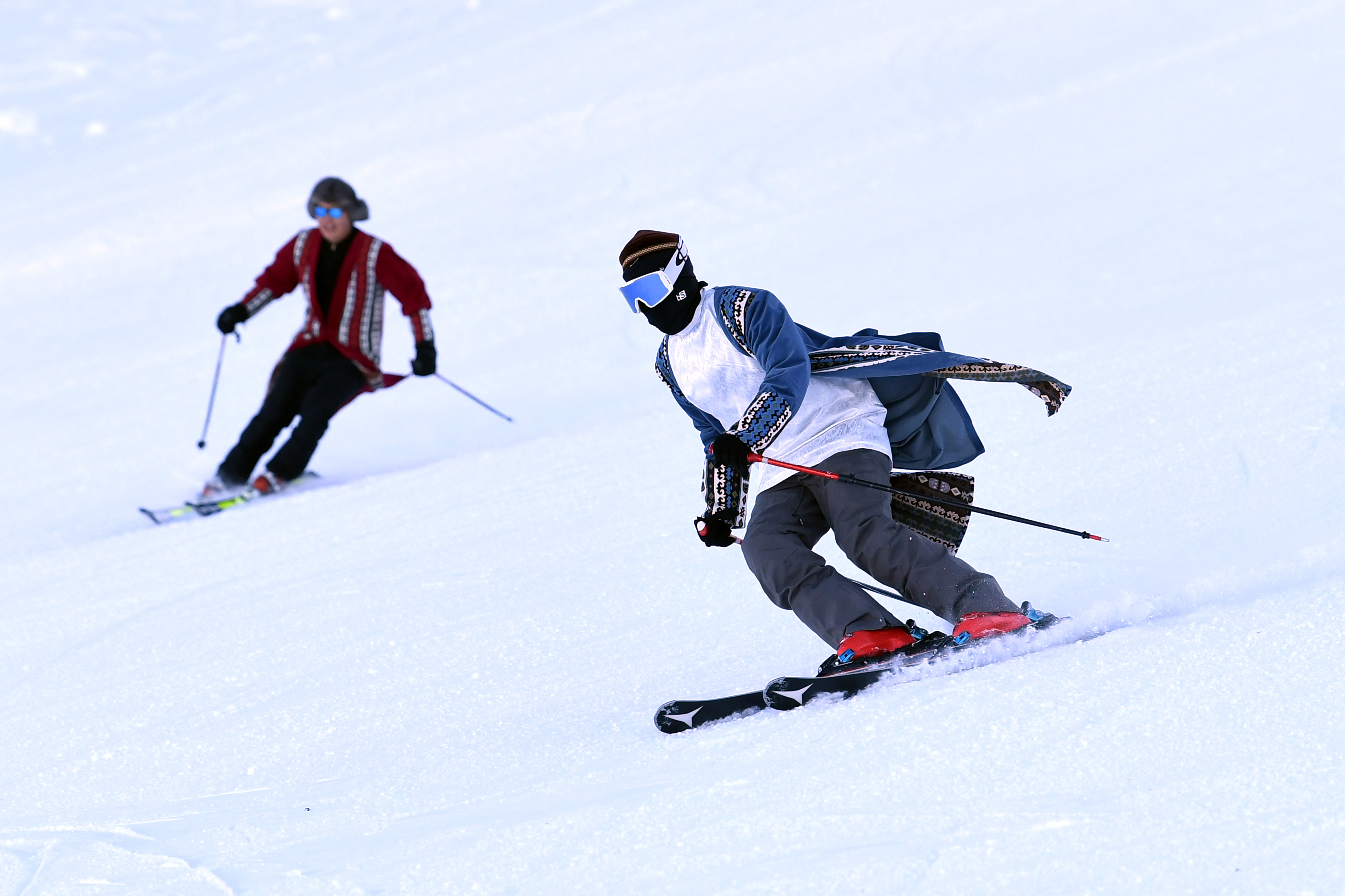 滑雪场,是冰雪运动的“主场”。身穿民族传统服饰的姑娘小伙们,脚踩滑雪板,从看上去近乎垂直的山坡上驰骋而下时,一道道青春弧线在“热雪”上空飞扬。