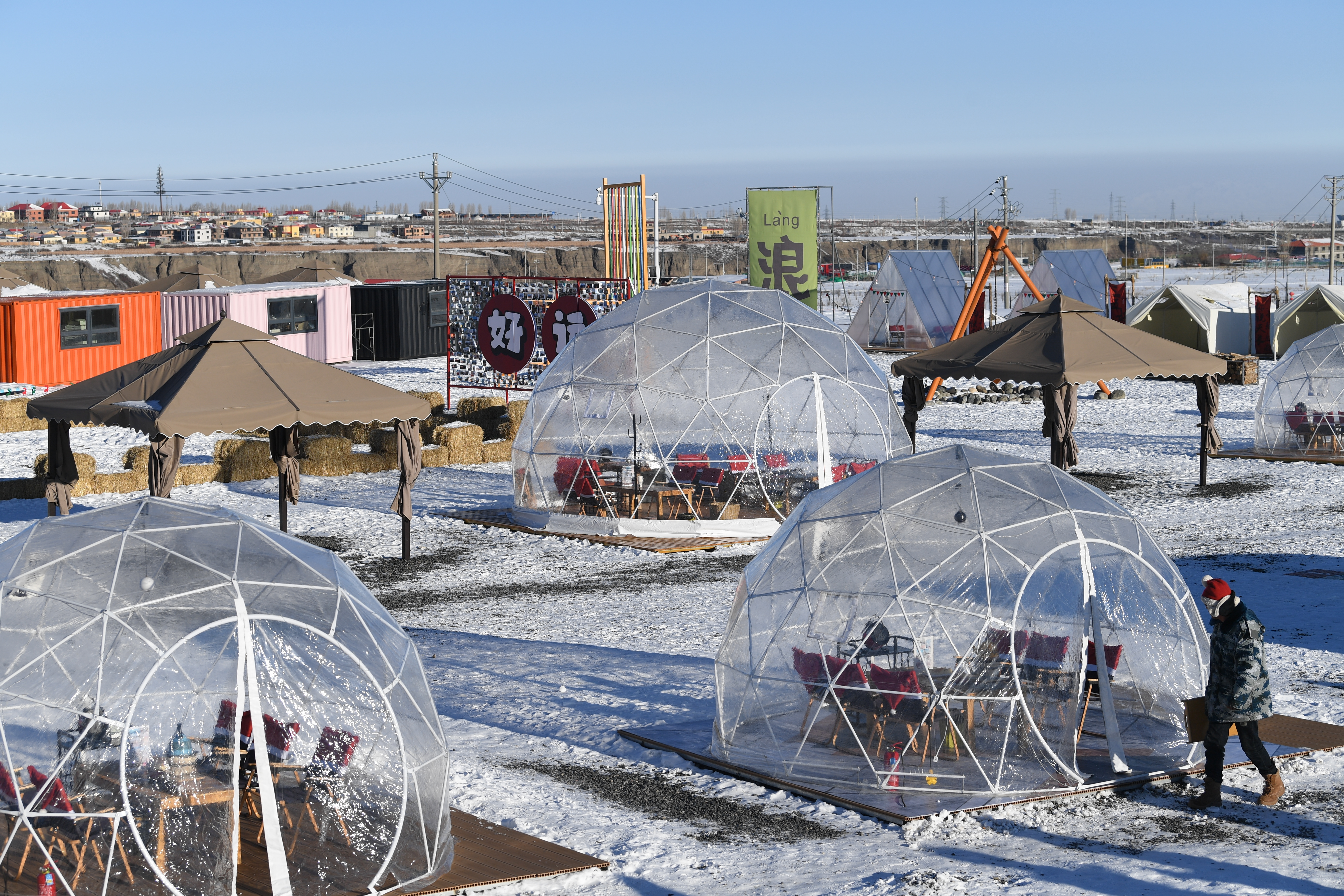 “今年冬天,全国的泡泡屋营地99%都是停业状态,但我们做了全国的1%。”位于乌鲁木齐南郊的趣野文创园是今年8月当地新增的一处露营地,占地面积近40亩。在透明的泡泡屋里一边赏雪景,一边围炉煮茶;入住太空舱,透过大玻璃窗与日月星辰、雪白世界融为一体,不断解锁人们的冰雪游新玩法、新体验。趣野文创园创始人周成介绍,随着2023—2024雪季的到来,营地周末日均接待游客1000余人次。