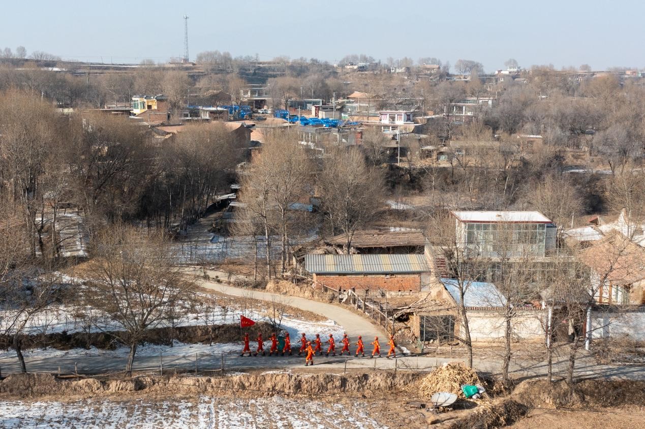 12月21日,在积石山县石塬镇石塬村,甘肃省森林消防总队陇南支队合作大队整装出发。人民网记者 翁奇羽摄