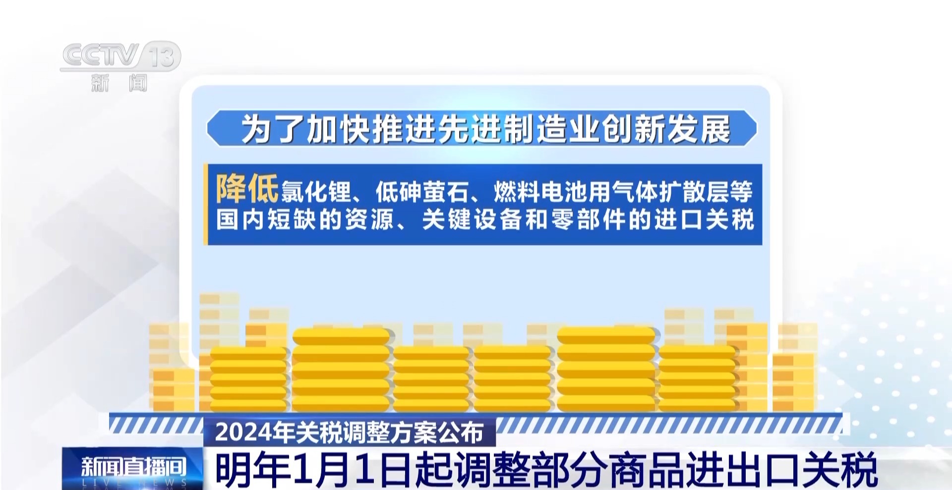 为继续发挥进出口对经济的支撑作用,更好履行关税在统筹国内国际两个市场两种资源中的重要职能,今天(12月21日),国务院关税税则委员会发布公告,2024年将调整部分商品的进出口关税。