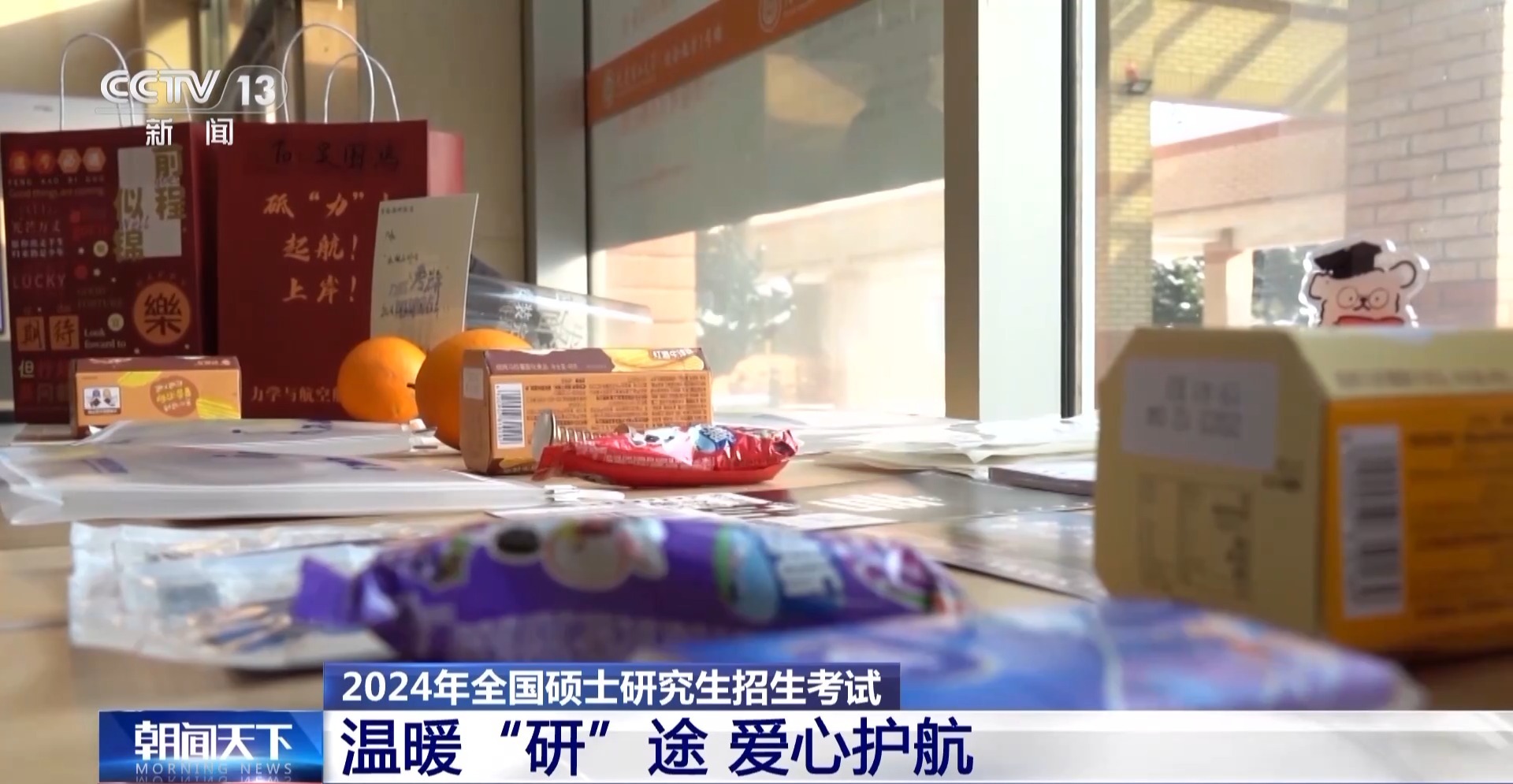 同样为考生准备礼包的还有甘肃西北师范大学,礼包里装有薯片等各种小零食和水果,为紧张复习中的考研学子带来一份暖心的祝福。