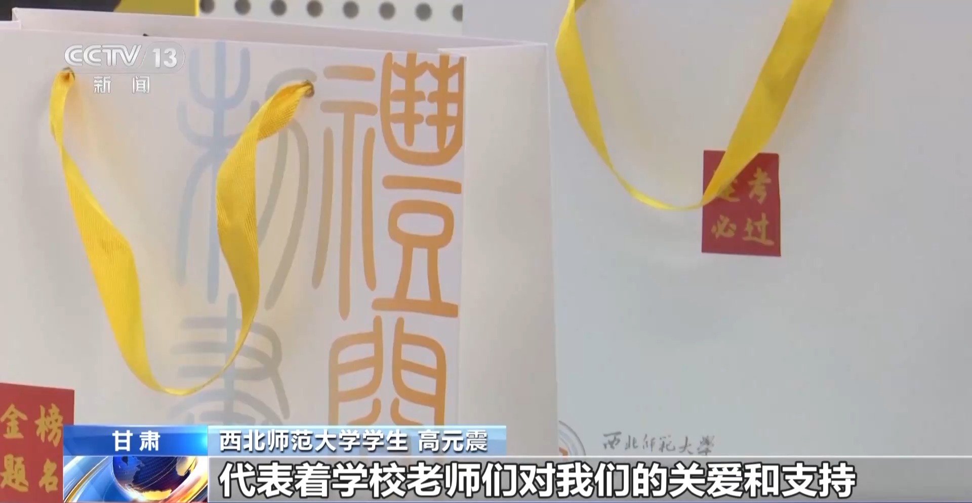 西北师范大学学生 高元震:代表着学校老师们对我们的关爱和支持,也希望今年我们考研学子都可以在考研过程中取得自己理想的成绩。
