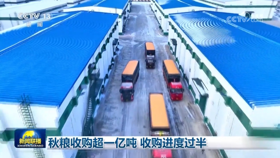 央视网消息(新闻联播):国家粮食和物资储备局最新数据显示,目前,主产区各类粮食企业累计收购秋粮超过一亿吨,收购进度过半。