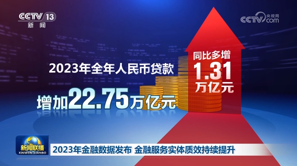 央视网消息(新闻联播):中国人民银行公布数据显示,2023年,信贷增速保持相对高位,金融服务实体经济质效持续提升。