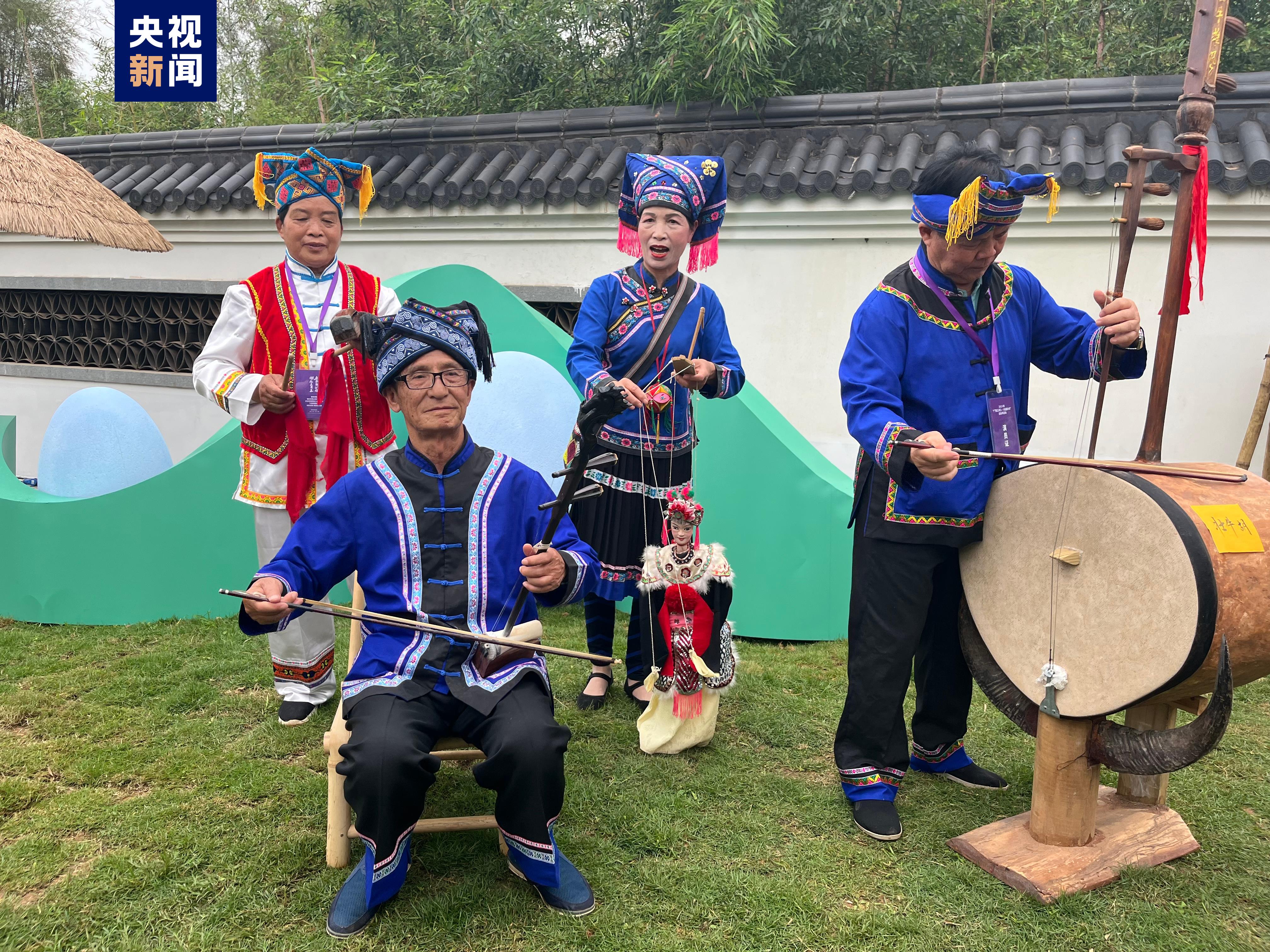 在非遗拓印展示摊位前,祈求风调雨顺的铜鼓、载歌载舞的壮族男女、寓意多子多福的青蛙等图案“跃然纸上”。“锦绣广西”村寨展示单元则重点还原壮锦技艺、蜡染扎染等场景,展示丰富多彩的广西织锦刺绣。还有非遗传承人现场制作瑶族油茶,天琴、独弦琴、马骨胡等广西传统乐器的演奏让现场民众尽情感受广西的天籁。