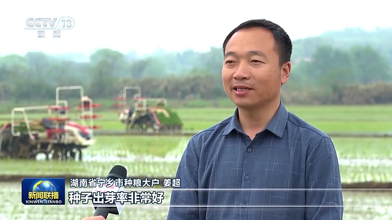 湖南省宁乡市种粮大户 姜超:种子出芽率非常好,秧苗整齐壮实,我们依靠科技力量,在稳面积提单产上出成效。