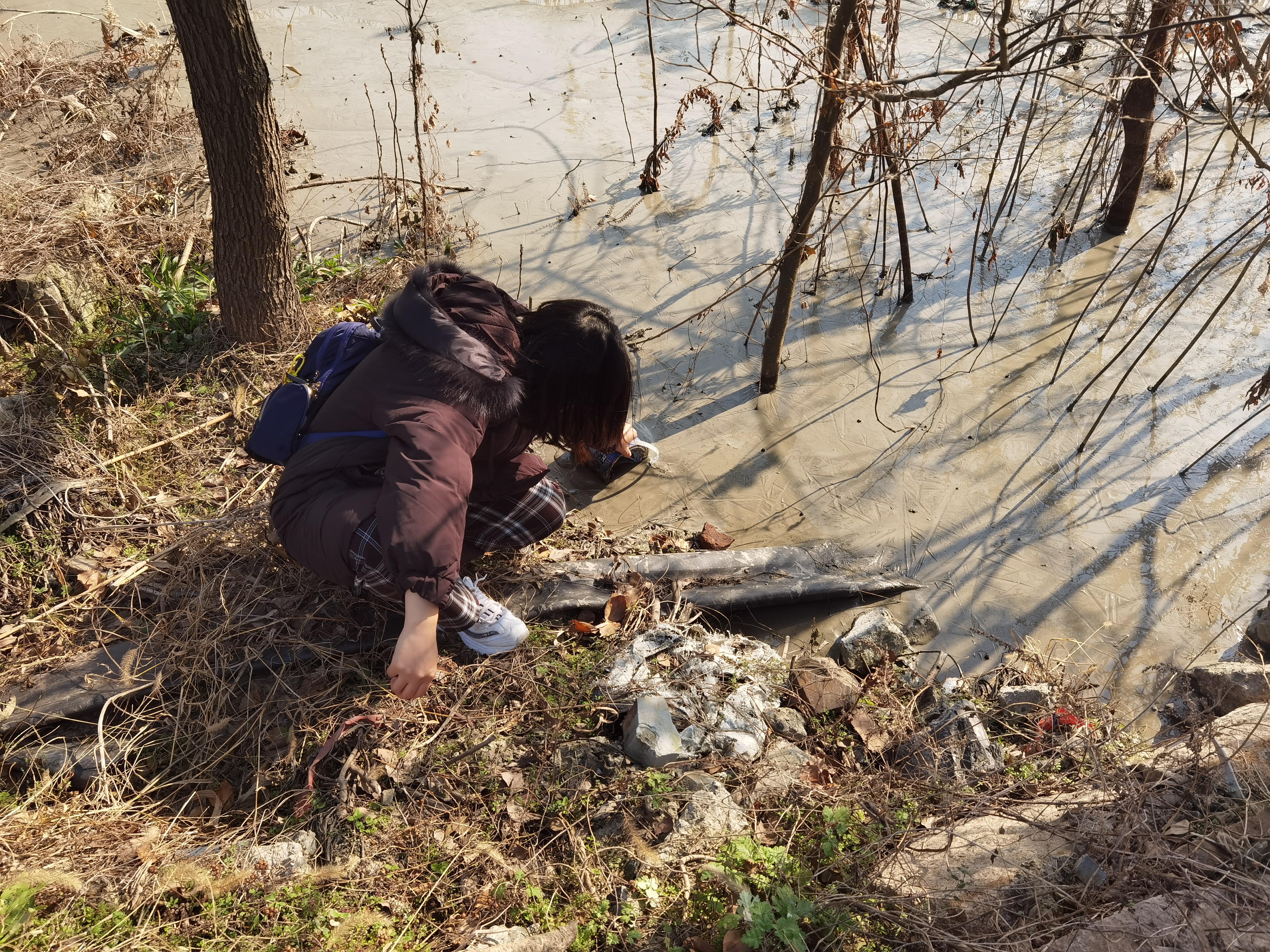 最危险的一次则是今年4月。我在农村暗访时,发现空旷田间堆了一堆灰黑色的“土”,觉得不对劲,就去用手捻了一下,还凑近闻了闻,结果倒了两瓶纯净水也没有洗干净。回到南京检测才知道,里面的重金属元素铬严重超标,还有硫、氯等有害元素和微量放射性元素。六价铬是一种易溶于水且剧毒的重金属,属于一类致癌物。检测人员得知我用手直接取样,当即说我不要命了。