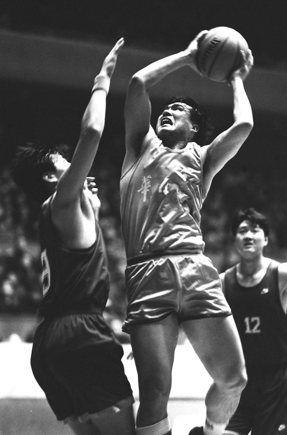 ↑1995年4月2日,在全国男子篮球甲级八强赛南京赛场比赛中,南京军区队81比72主场战胜吉林队。南京队主力4号凌小龙一人独得27分,为全场得分最高的队员。这是凌小龙突破上篮。1995年是中国篮球联赛职业化改革首年。新华社记者 杨磊摄