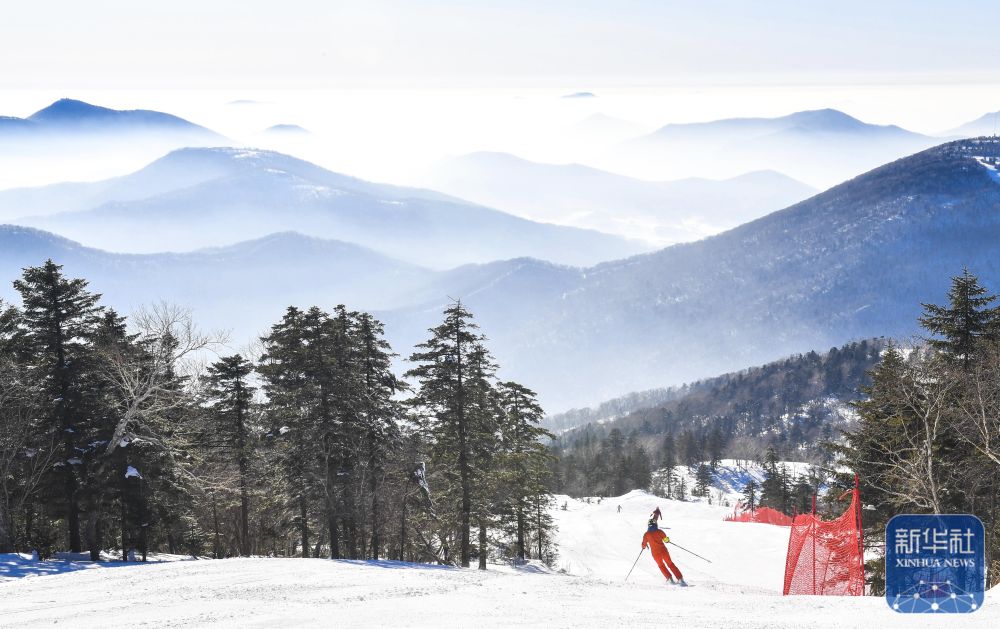 ↑2020年1月26日,滑雪爱好者在吉林市冰雪试验区北大湖滑雪度假区滑雪。 新华社记者 许畅 摄