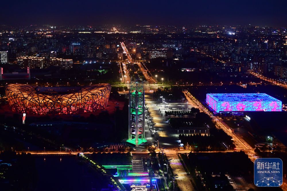 ↑这是2022年6月23日拍摄的国家体育场(左)与国家游泳中心夜景。作为“双奥之城”的标志性场馆群“冰丝带”、“鸟巢”、“冰立方”联动亮灯,共同传递奥林匹克精神,号召民众用运动点亮健康生活,创造美好未来。 新华社记者 张晨霖 摄