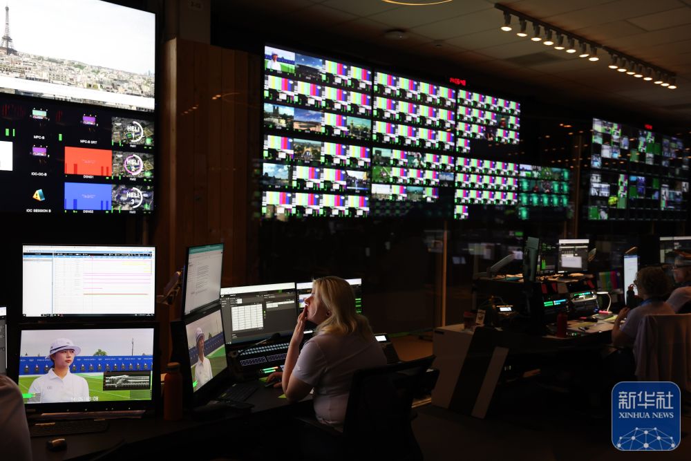 ↑工作人员在奥林匹克广播服务公司转播技术中心工作(2024年7月25日摄)。 阿里云与奥林匹克广播服务公司(OBS)共同打造的OBS Cloud成为巴黎奥运全球转播的重要基础设施。 新华社记者 黄宗治 摄