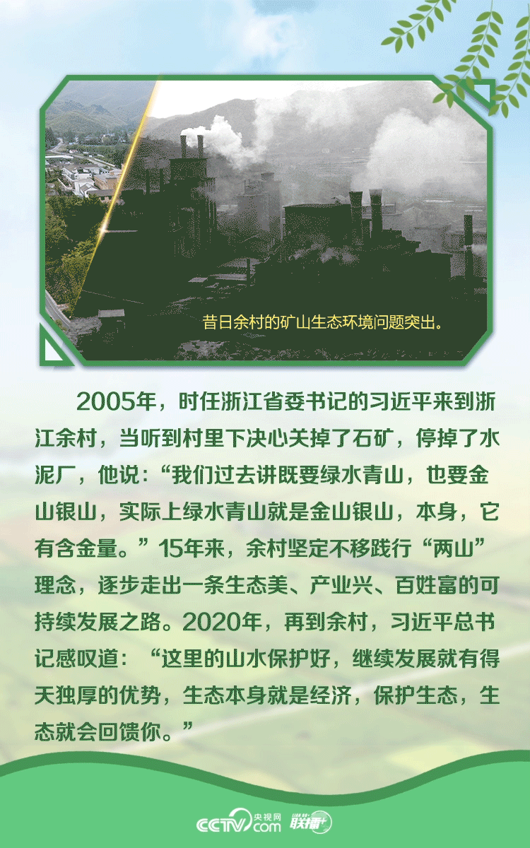 值“两山”理念提出15周年之际,央视网《联播+》与您一起跟随习近平总书记的步伐,感受绿水青山蕴含的宝贵财富。