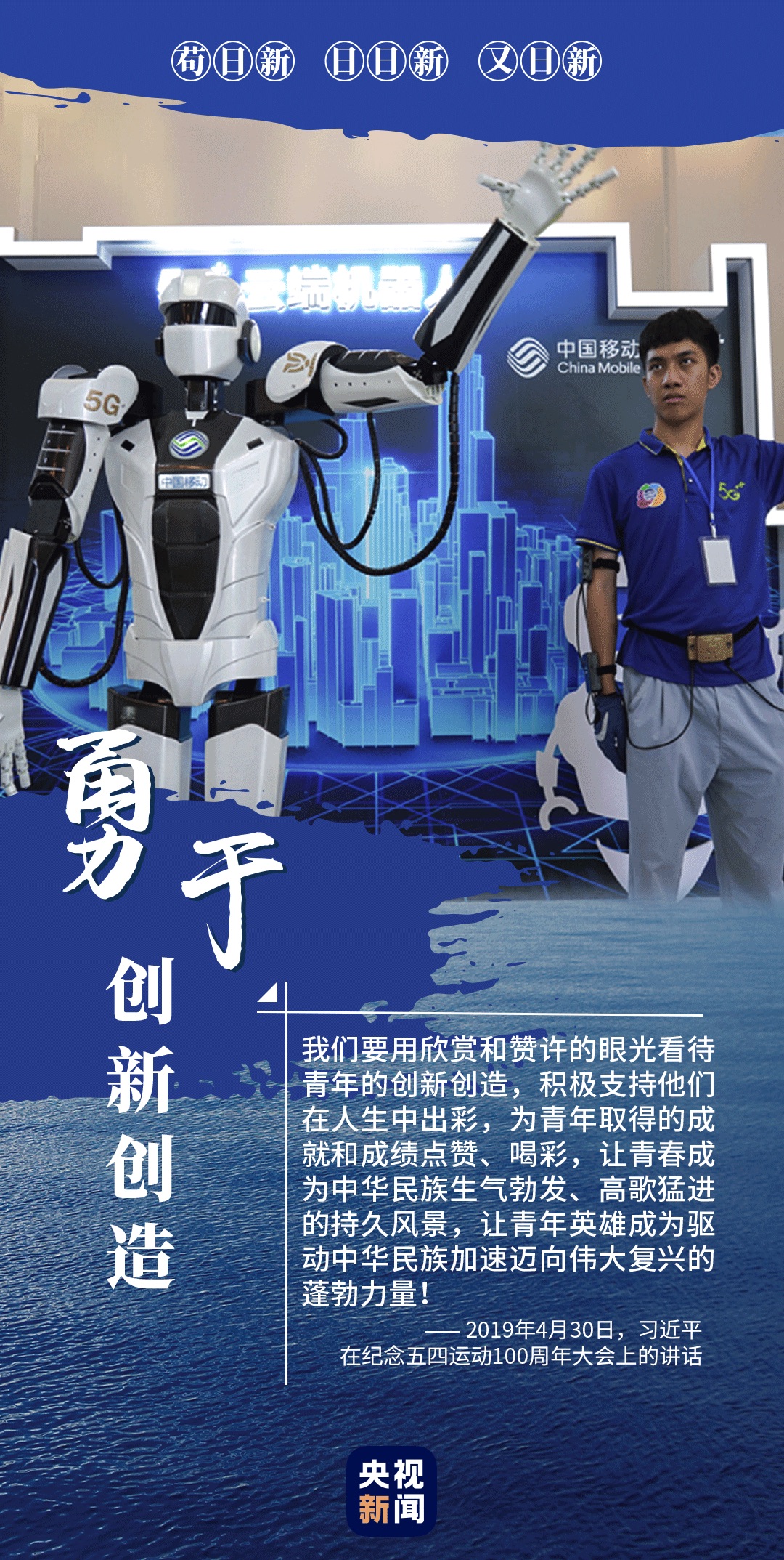 青年是社会上最富活力、最具创造性的群体,理应走在创新创造前列。2013年5月4日,习近平在同各界优秀青年代表座谈时勉励广大青年一定要勇于创新创造。