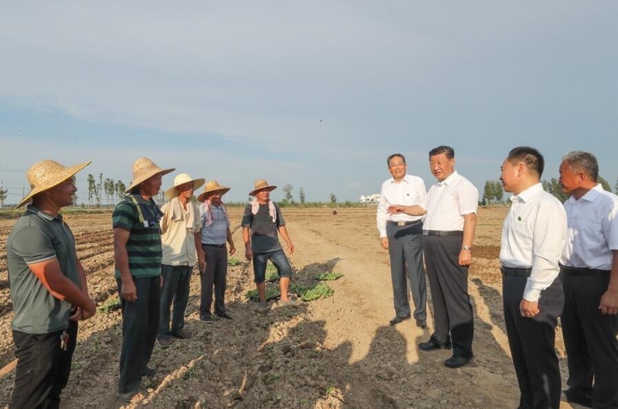 时隔一月,习近平总书记专程来到阜南县,看坝闸、进农田、入村庄,了解当地防汛救灾和灾后恢复生产等情况。