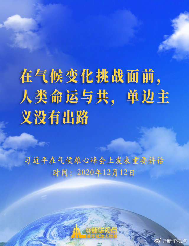 12月12日,国家主席习近平在气候雄心峰会上发表题为《继往开来,开启全球应对气候变化新征程》的重要讲话。一起来看讲话金句↓