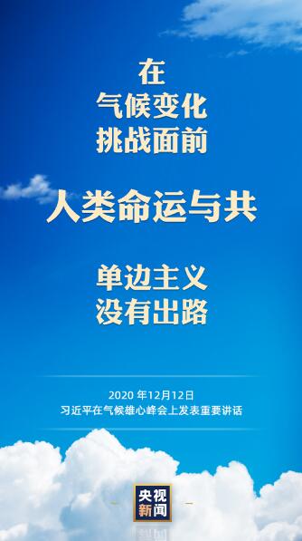 12月12日,国家主席习近平在气候雄心峰会上通过视频发表重要讲话。